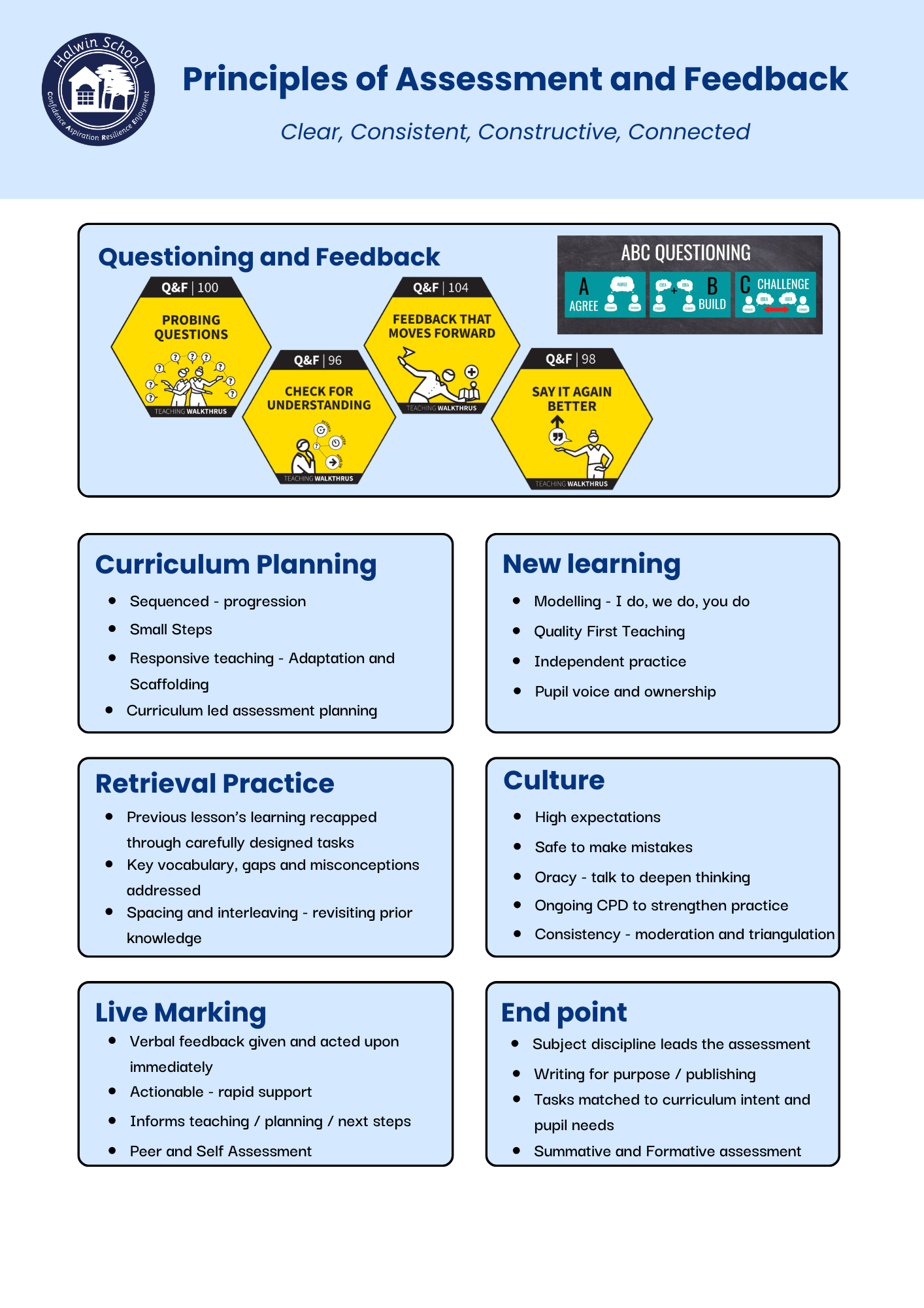 Our curriculum is underpinned by consistent approaches to teaching, assessment, and pupil wellbeing. These are captured in three key frameworks: